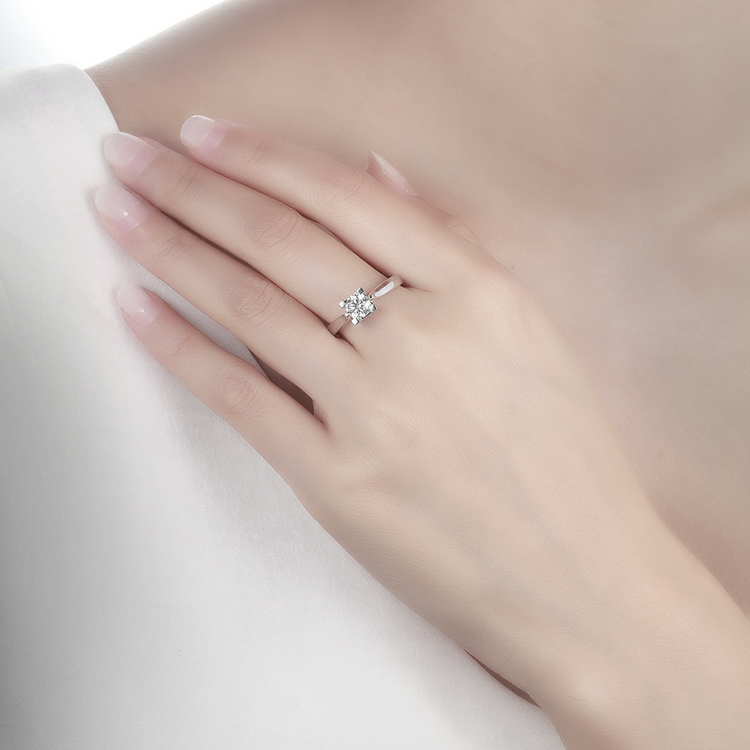 型镶口的巧妙设计﹐象征着连接爱的桥梁,将彼此的心连在一起.我的心﹐连着你的那颗心﹐心心相印,矢志不渝,经典四爪镶嵌工艺,从各个角度展现钻石火彩﹐让爱意无限闪耀,