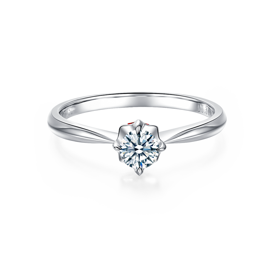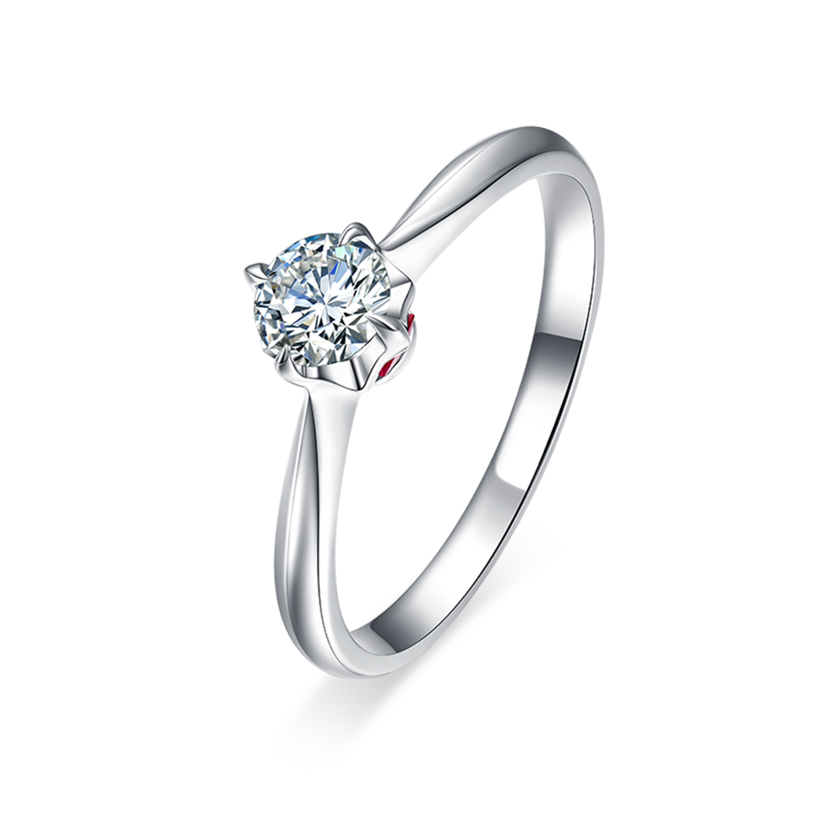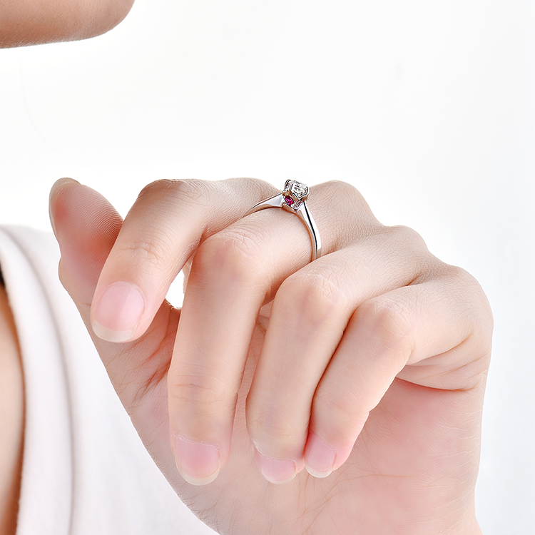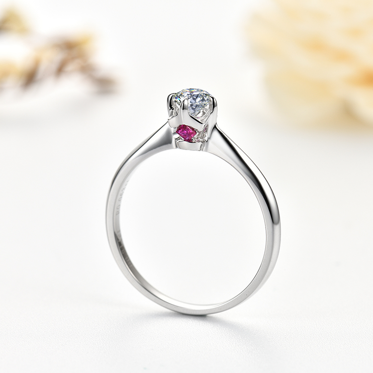 经典四爪镶嵌设计 间隙用红宝石内镶璀璨 戒台采用镂空设计,可吸收光线 使钻石更加璀璨耀眼