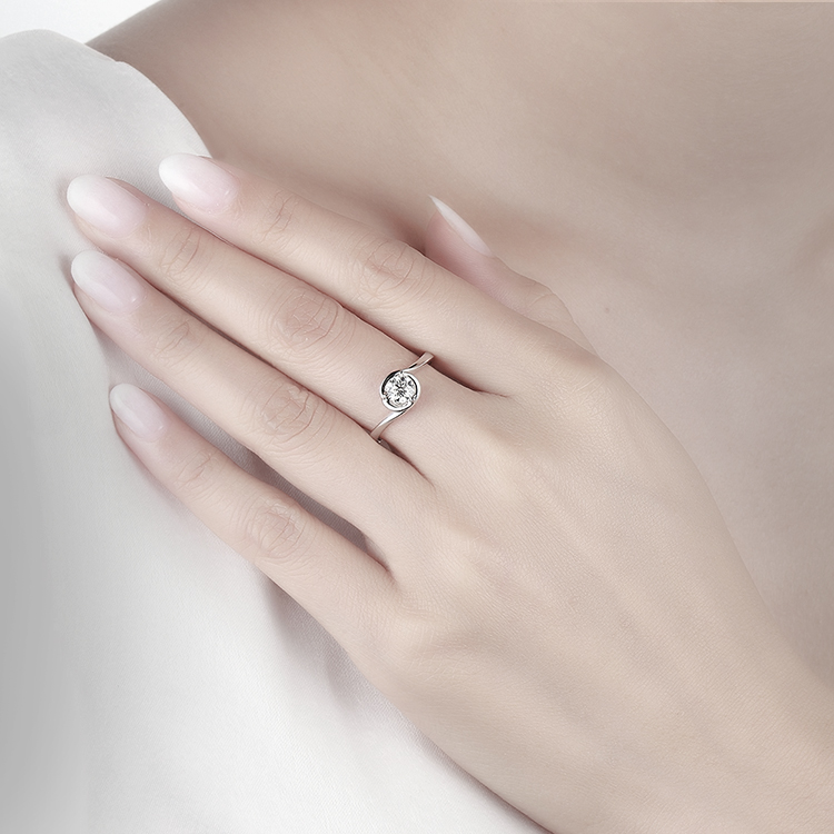 简约三爪花瓣型镶嵌,将钻石牢牢包围,营造简约立体感.灵动交错的扭臂设计,舒适修饰手型.圆润流畅的线条,搭配闪耀钻石﹐熠熠生辉,彰显高雅气质.