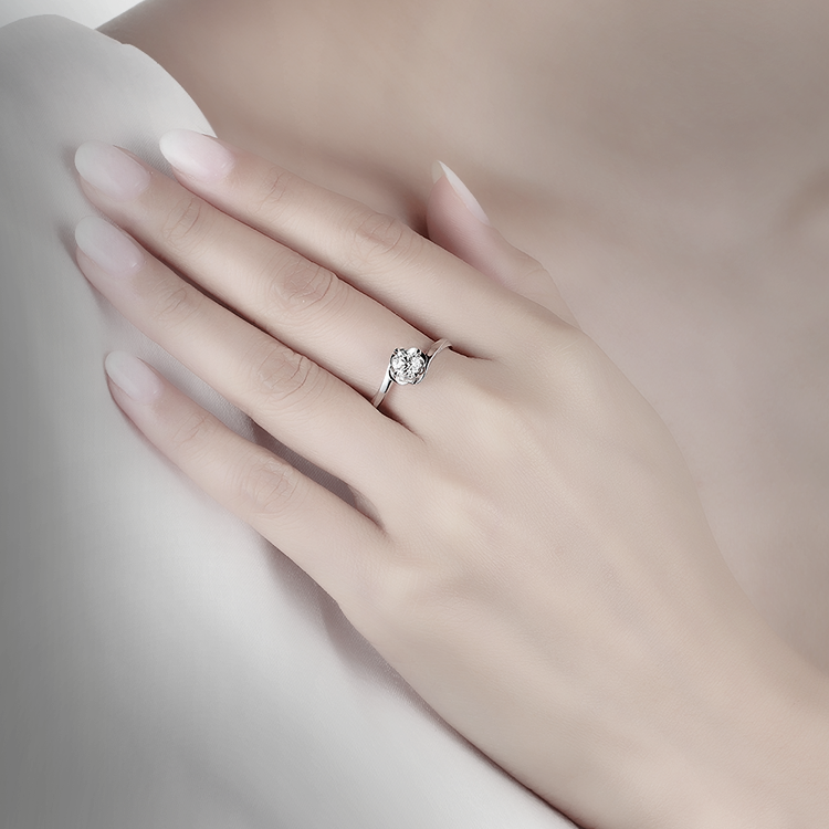 精湛的抛光工艺,打造出优雅弧度的流畅线条﹐让独特的扭臂设计更显质感,唯美的花型镶口,富有层次感的设计,犹如献给爱人的浪漫花束,点滴爱意,收藏在这枚精致的表白之戒-